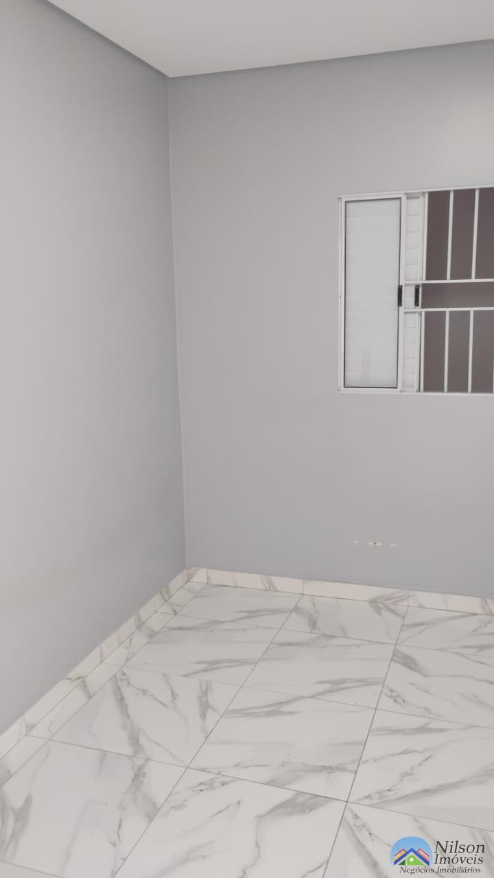 Uma casa com 2 dormitórios, cozinha, sala e wc.