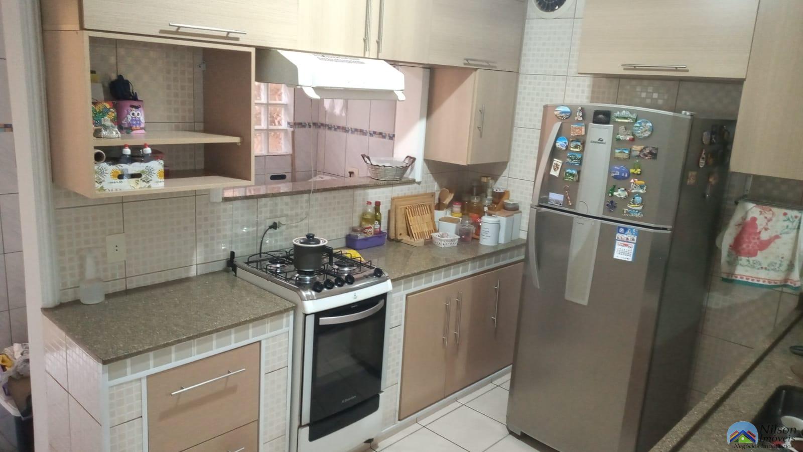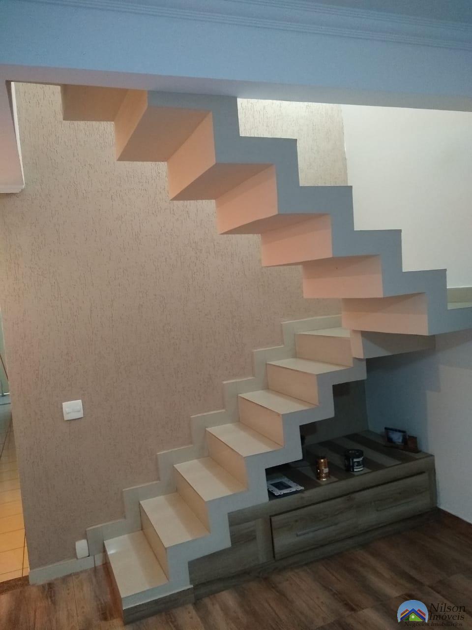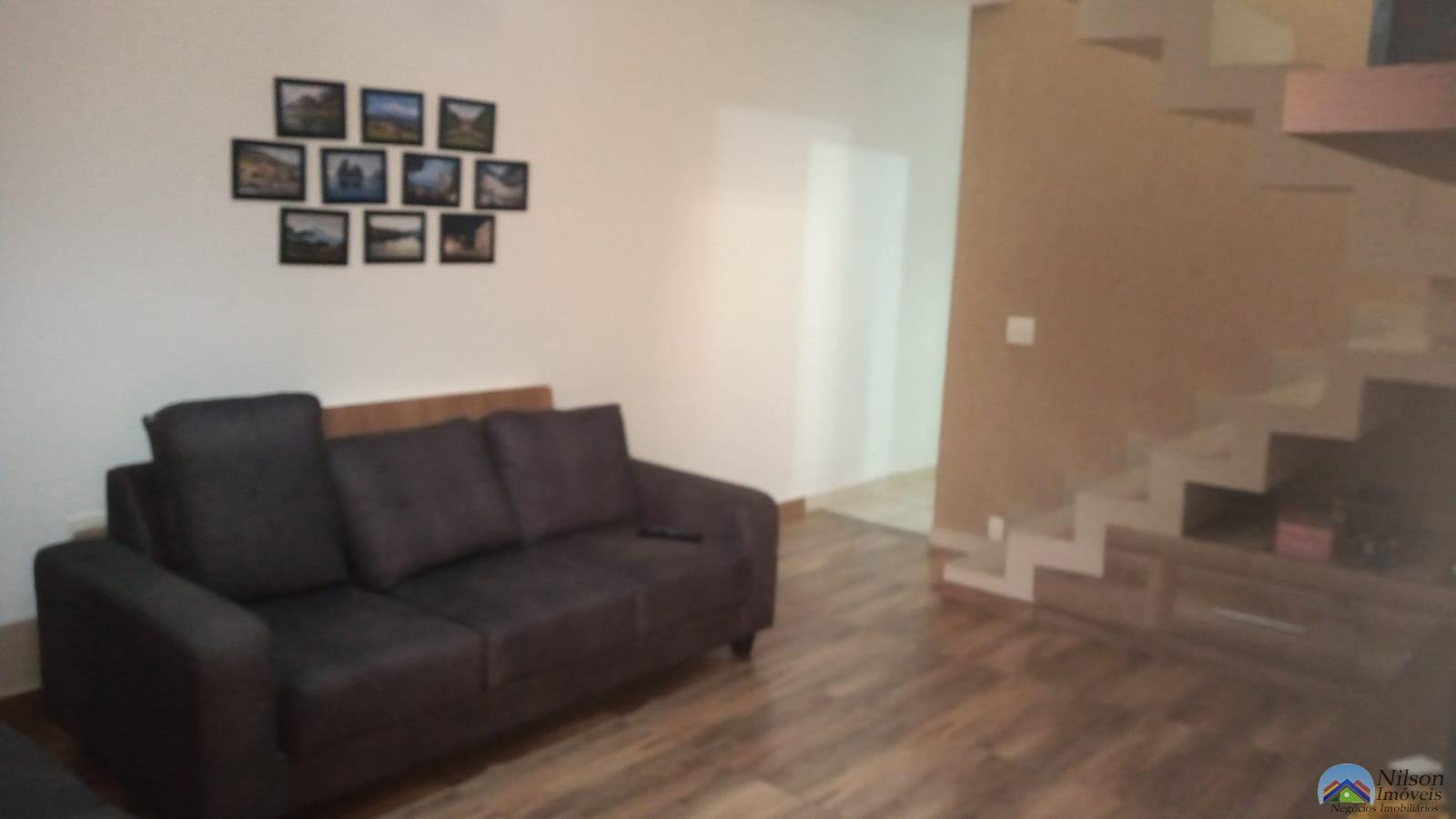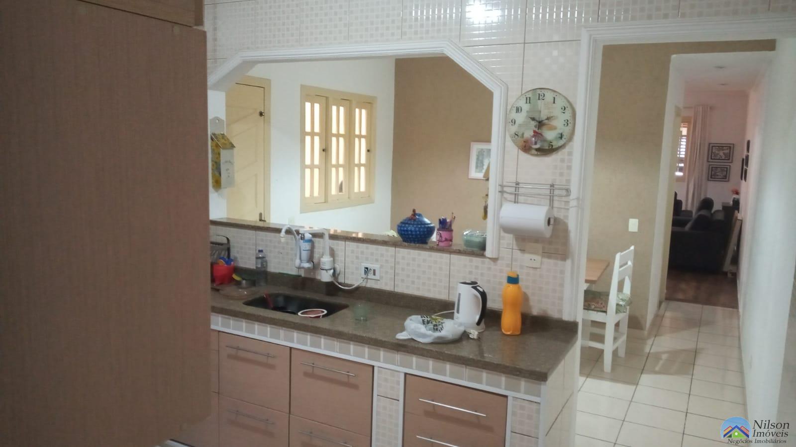 Sobrado tendo 2 dormitórios com 1 closet, cama planejada com sacada, em baixo a sala, cozinha planejada copa, bancada de serviço, nos fundos área com churrasqueira, tem porão, reservatório de agua da chuva semiautomático e 2 wcs, em cima e em baixo têm garagem e parte de cima também tem área livre pequena.