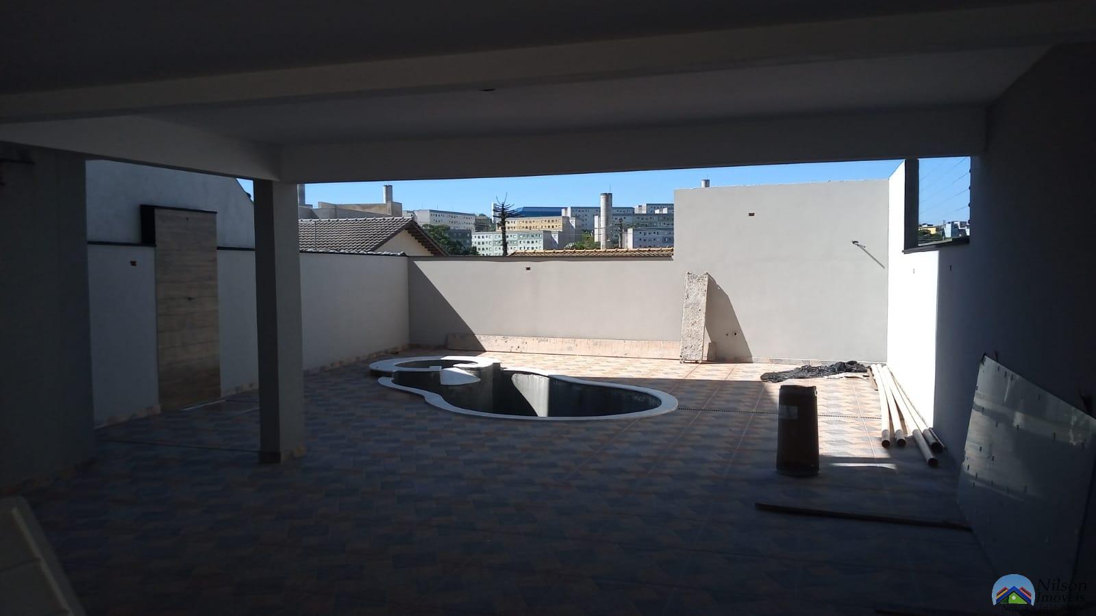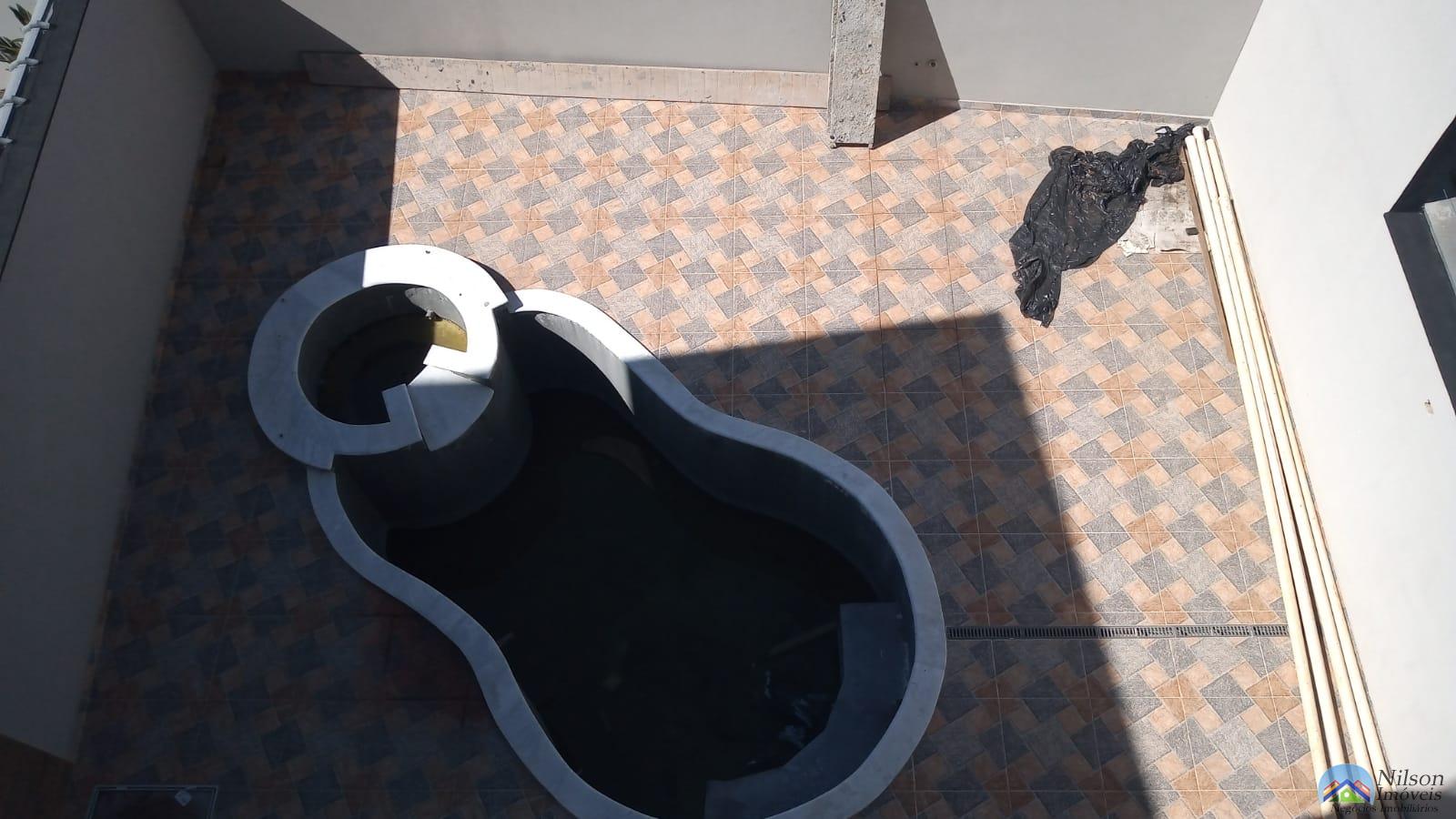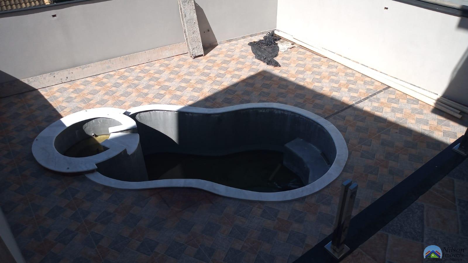 Sobrado lindo com 3 dormitórios, sala, cozinha, wc, garagem e piscina.
