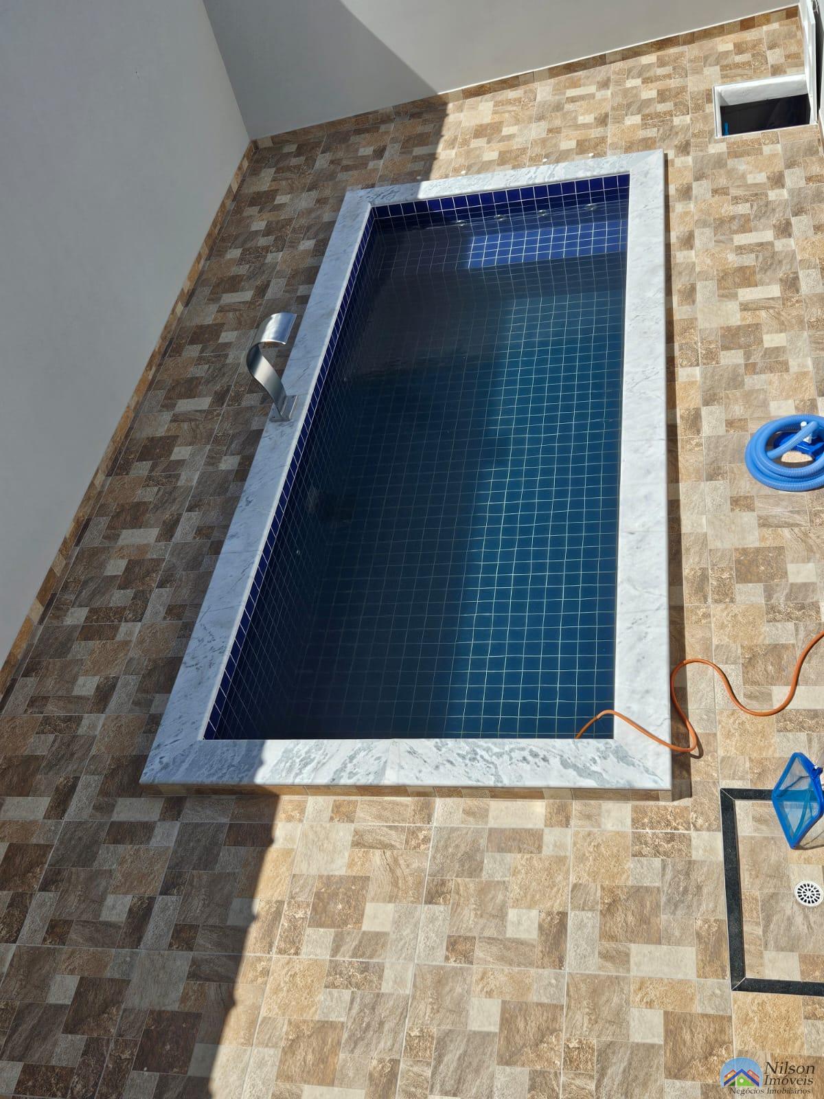 3 dormitórios, sala, cozinha, lavabo, área gourmet com churrasqueira, piscina e garagem.