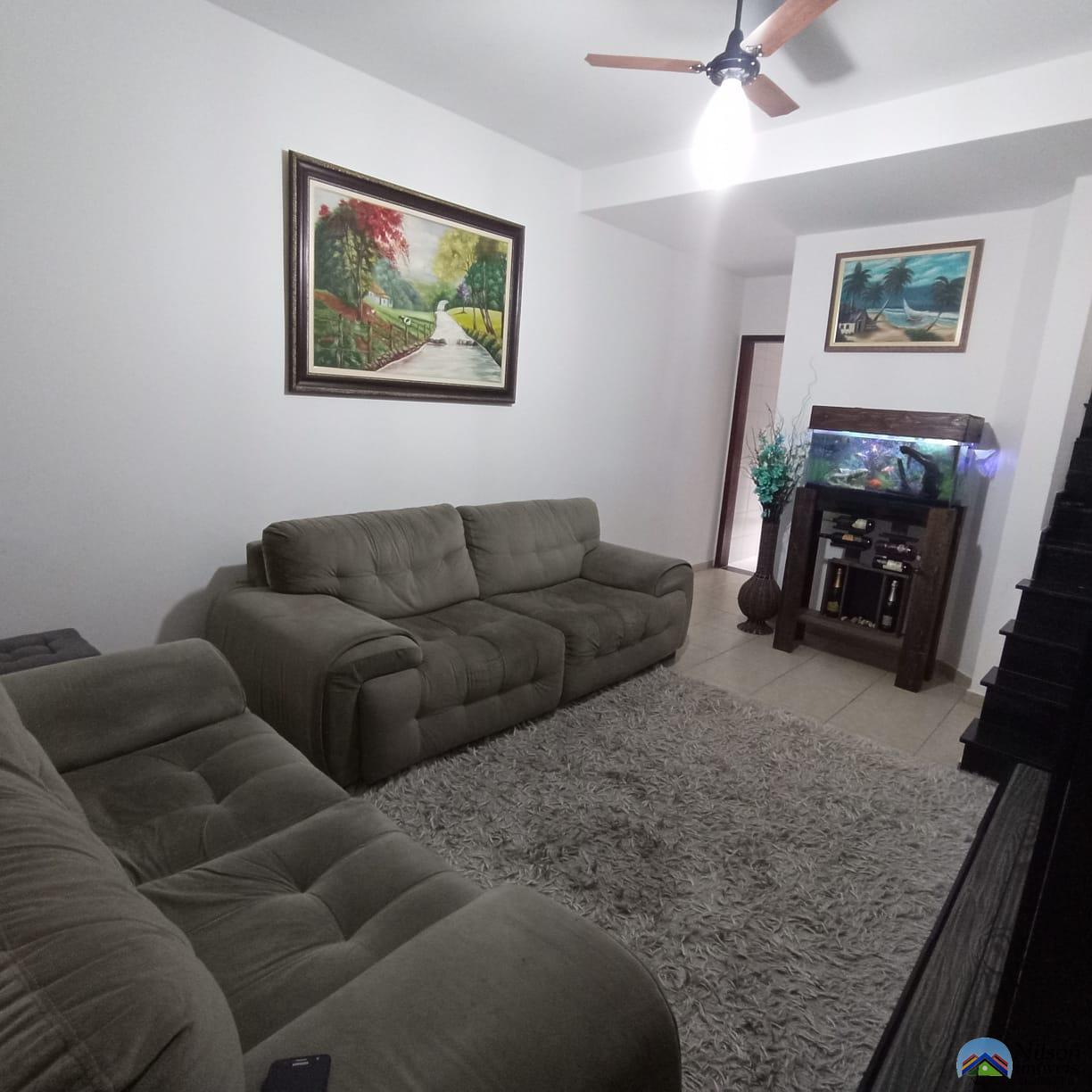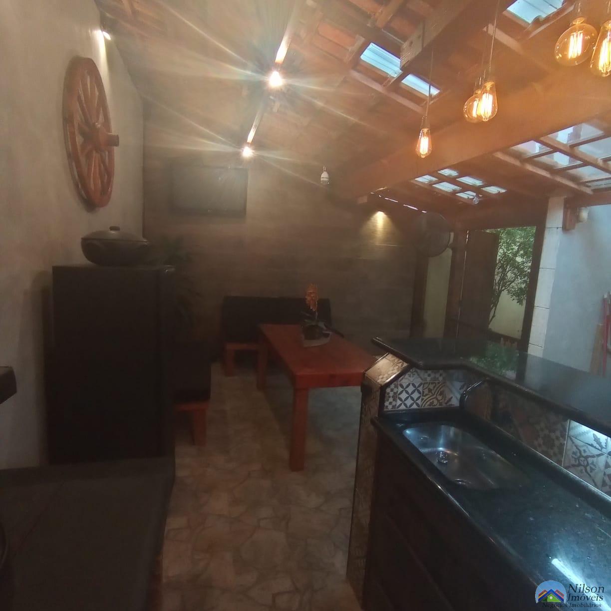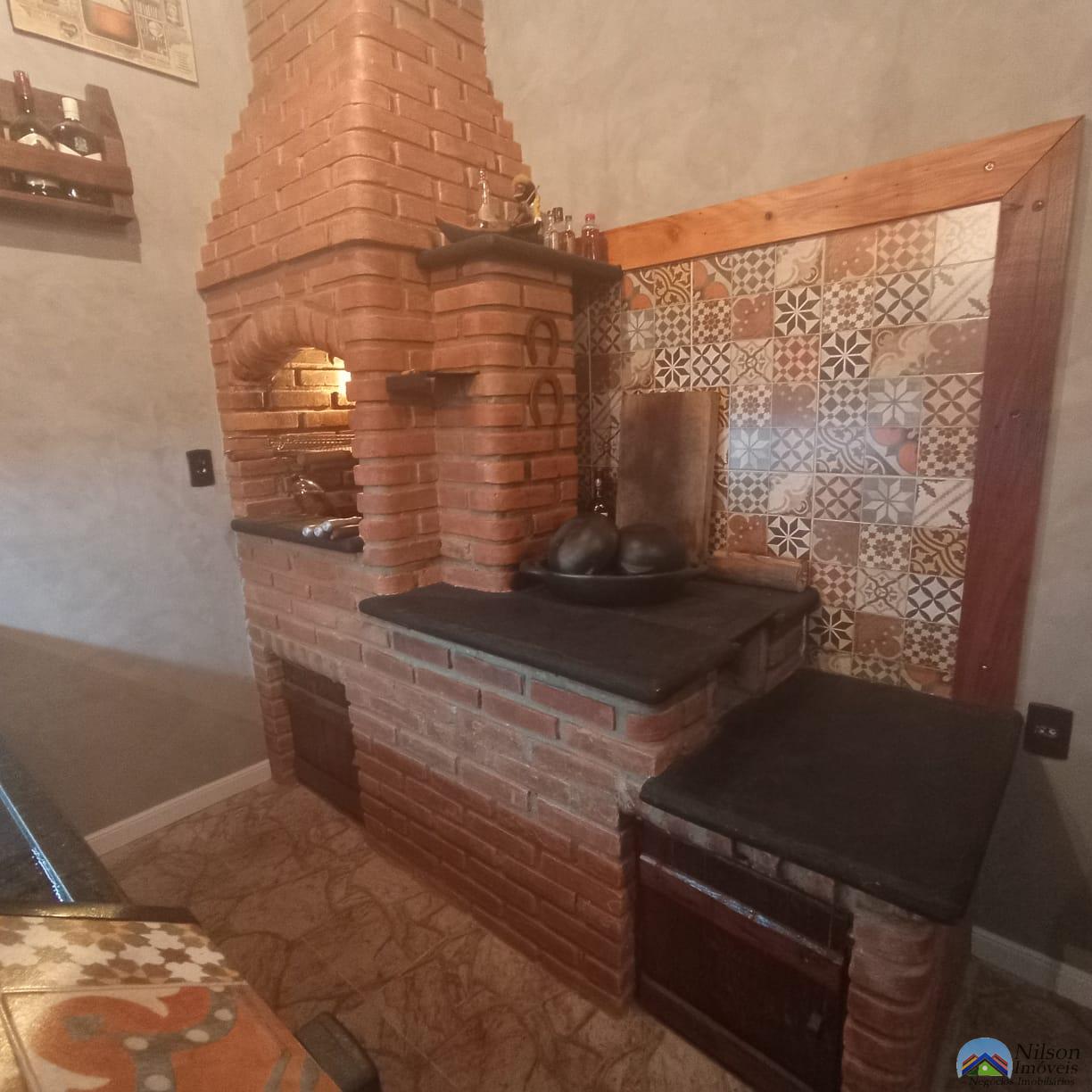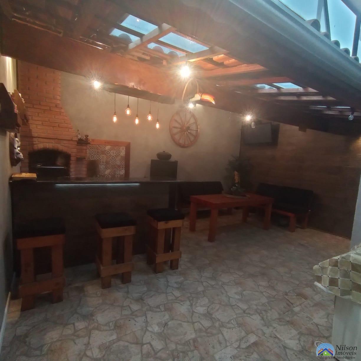 sobrado com 2 dormitórios 1 suíte, sala, cozinha, 3 wcs, lavanderia, área gourmet com churrasqueira + Fogão a Lenha, garagem para 2 carros e quintal lateral.
