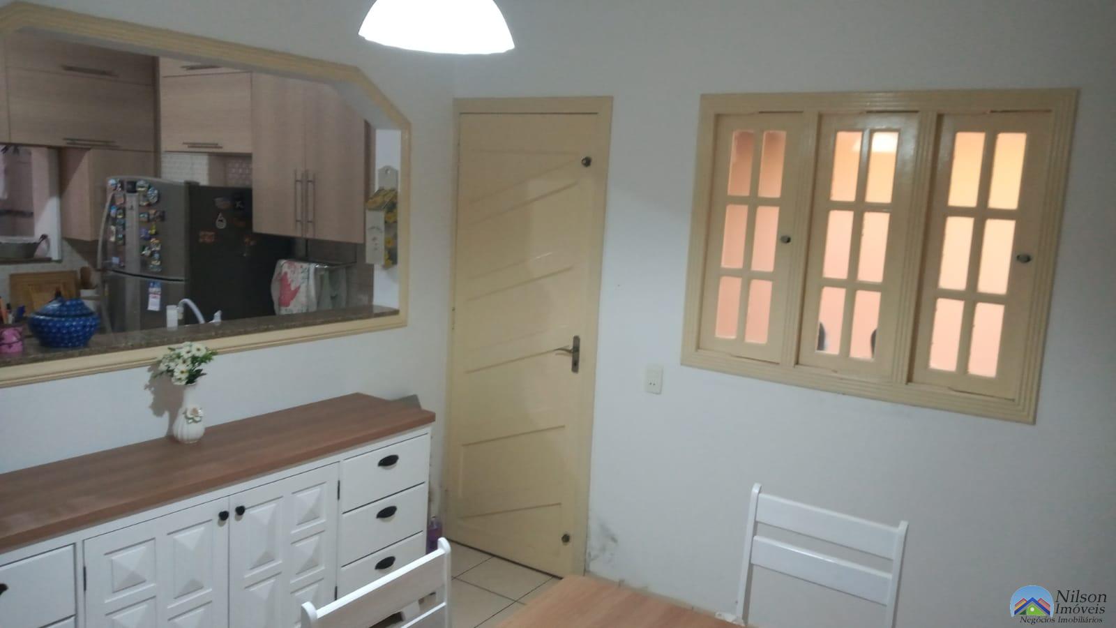 Sobrado tendo 2 dormitórios com 1 closet, cama planejada com sacada, em baixo a sala, cozinha planejada copa, bancada de serviço, nos fundos área com churrasqueira, tem porão, reservatório de agua da chuva semiautomático e 2 wcs, em cima e em baixo têm garagem e parte de cima também tem área livre pequena.