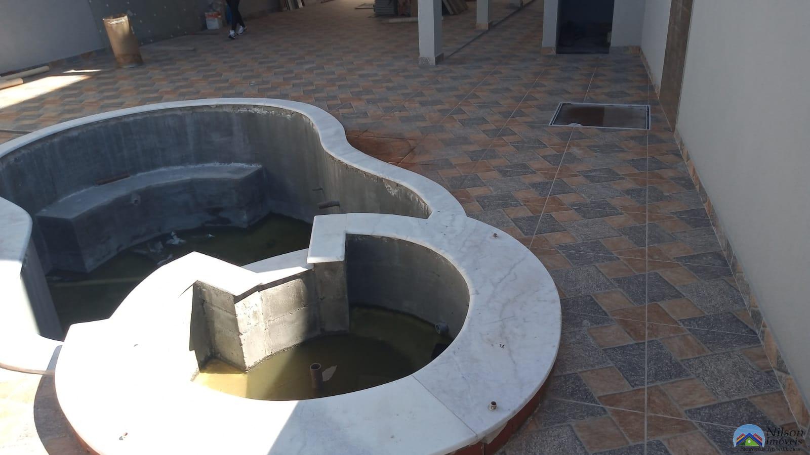 Sobrado lindo com 3 dormitórios, sala, cozinha, wc, garagem e piscina.