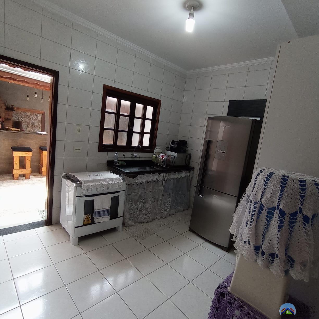 sobrado com 2 dormitórios 1 suíte, sala, cozinha, 3 wcs, lavanderia, área gourmet com churrasqueira + Fogão a Lenha, garagem para 2 carros e quintal lateral.